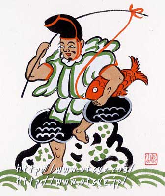 帽子に釣竿、鯛を抱えた典型的な「えびす」の絵です。
